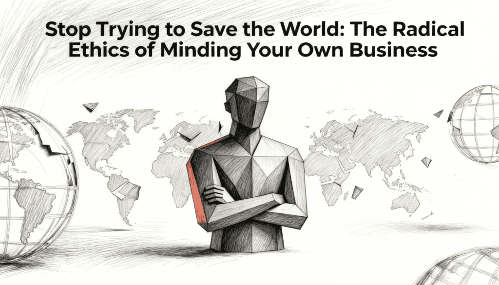 There is a particular kind of person who wakes up every morning burdened by the weight of problems that are not theirs. They scroll through the news, absorb the suffering of strangers in distant countries, and feel personally responsible for fixing all of it. They post about injustice. They sign petitions. They argue at dinner parties about what “we” should do about some crisis unfolding three continents away. And at the end of all this exhausting moral performance, nothing has actually changed. Not the world. Not the crisis. And certainly not their own garden, which has been quietly growing weeds while they were busy worrying about everyone else’s.